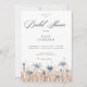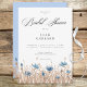 Los suaves acianos azules que florecen en un campo marrón claro hacen que esta sencilla invitación para la despedida de soltera sea única. Casi se puede sentir la suave brisa que mueve las hierbas. Simple, pero elegante; los tonos terrosos y el azul suave son la combinación perfecta. La parte posterior de la tarjeta lleva el tema del campo a un cielo azul claro. Creado por Simply Farmhouse Press.