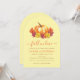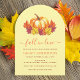 Una invitación de despedida de soltera con arco en colores de otoño: naranja, rojo y amarillo. El tema es "Enamórate".
