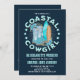 Invitación personalizada de despedida de soltera de vaqueras costeras con los detalles de la fiesta, información de RSVP para tus damas de honor y programa o itinerario en la parte posterior. Cambia la fuente o los colores haciendo clic en el botón para editar el diseño.