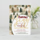 Una invitación e itinerario de fin de semana de despedida de soltera con tema de bosque de madera. Este diseño de franela y burbujas presenta un suave diseño de cuadros verde y marrón. Fácil de personalizar con tus propios detalles de fiesta de despedida de soltera. Perfecto para viajes de camping glamping, fiestas de esquí o eventos de fiesta de despedida de soltera al aire libre con franela y burbujas.