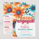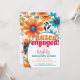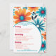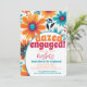 Una itinerario de fin de semana de despedida de soltera y invitación divertida. Este diseño retro presenta un diseño de poder floral naranja, rosa y azul. Fácil de personalizar con tus propios detalles de fiesta de despedida de soltera. Un diseño 'alocada y comprometida' brillante y audaz que llamará la atención.