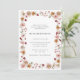 La invitación de la ducha nupcial rústica boho es perfecta para la novia inspirada en la naturaleza. Con hermosas flores silvestres pintadas a mano en acuarela en una gama de tonos rosa suave, rosa polvoriento, burgundy y terracota, este conjunto está enmarcado en un estilo rústico boho con vegetación de color verde salvia que agrega un toque de encanto moderno. Haz que tu gran día sea inolvidable con este encantador conjunto de boda. Encuentra productos coordinados en la Colección de Boda de Flores Silvestres de Otoño Rústica Boho.