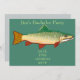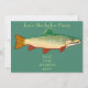 Una invitación genial con una ilustración de tema de pesca de una ilustración de pez trucha contra un fondo verde personalizable. Esta invitación sería adecuada para una actividad de despedida de soltero de pesca o cualquier viaje de cumpleaños de pesca. El texto es totalmente personalizable y se puede cambiar para reflejar un tema de cumpleaños si lo necesita.