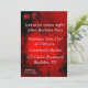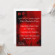 Una invitación perfecta para despedidas de soltero o eventos de casino. El diseño presenta cartas de juego, ruleta y dados rojos sobre un fondo roñoso rojo y negro. Las invitaciones vienen con sobres.