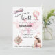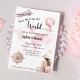 Celebremos el próximo gran viaje o viaje al mundo con un fiesta que se va. Con un avión rosado, un globo de estilo vintage y un rosa de brújula, el diseño se sitúa en un mapa del mundo de las acuarelas suaves en tonos rosa pálido y color turquesa. Una forma caprichosa y reconfortante de invitar a los invitados a su fiesta de despedida antes de partir a la gran aventura.