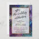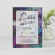 Sobre un fondo audaz y artístico que presenta salpicaduras de acuarela, diamantes negros y colores vivos, he colocado un rectángulo blanco opaco bordeado en falso oro metálico para destacar el texto. La parte superior presenta una capa de tipografía simple que dice "después de la celebración de la boda" en una fuente de escritura moderna con florituras y adornos. Utilice los campos de la plantilla para agregar sus propios detalles. Todas las capas se agregaron por separado y se dejaron sin bloquear para darle control de diseño. // 99 //