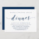 Tema moderno de color azul marino, tarjeta de invitación de boda íntima (Cena para siempre después). Es perfecto para su celebración íntima de boda junto al lago.