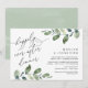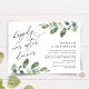 Hermoso diseño romántico moderno, en tema de acuarela de hojas de eucalipto, Anuncio de boda y fuga, tarjeta de invitación (fiesta de cena para siempre). Esto es perfecto para la recepción de su boda y la fiesta de celebración después de la boda. Agregue los detalles de su celebración de desayuno / cena de fuga.