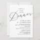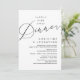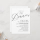 Anuncia y comparte tu felicidad para siempre con estilo con nuestra tarjeta de invitación de celebración de boda con tema negro y blanco moderno y romántico (Cena de felicidad para siempre). Es ideal para parejas que han decidido celebrar su mejor día. Con su diseño sofisticado y juguetón, esta invitación seguramente establecerá el tono para un evento inolvidable. La tarjeta de invitación presenta un tema de diseño de escritura moderno y minimalista, agregando un toque de elegancia atemporal a su celebración. Diseñado por TeeshaDerrick