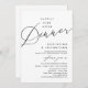 Anuncia y comparte tu felicidad para siempre con estilo con nuestra tarjeta de invitación de celebración de boda con tema negro y blanco moderno y romántico (Cena de felicidad para siempre). Es ideal para parejas que han decidido celebrar su mejor día. Con su diseño sofisticado y juguetón, esta invitación seguramente establecerá el tono para un evento inolvidable. La tarjeta de invitación presenta un tema de diseño de letra moderno y minimalista, agregando un toque de elegancia atemporal a tu celebración. Diseñado por TeeshaDerrick