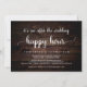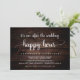 Hermoso después de la Fiesta boda Happy Hour, Invitación, Invitación de Elopement Boda / tarjeta de invitación, en un ambiente rústico de madera oscura, diseño simple, minimalista. Esto es perfecto para tu recepción de bodas y fiesta de celebración post-boda. Añade tus detalles en letras / fuentes coincidentes. Teesha Derrick
