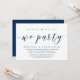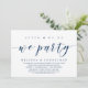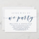 Tema moderno de color azul marino, tarjeta de invitación de boda íntima (Después de casarnos, ¡fiesta!). Es perfecto para su celebración informal de boda junto al lago.