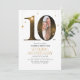 Celebra tu increíble aniversario con esta elegante invitación de 10º aniversario de bodas. El diseño presenta el número 10 enmarcado por una dispersión de delicadas estrellas doradas, creando un sentido de brillo discreto. Un diseño limpio y refinado asegura que el aniversario brille como el punto focal, con la opción de personalizar nombres, fecha y detalles del evento. La parte trasera de la tarjeta está equilibrada con un diseño complementario, completando la apariencia con sofisticación y armonía. Perfecta para parejas que celebran diez años de amor. Personaliza con tu propia foto y detalles para una invitación única. Busca ID1165 para ver todos los productos de esta encantadora colección.