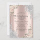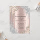 Un diseño moderno, chic y glamuroso con gotas de purpurina plateadas y flores sobre un fondo dorado rosado.