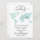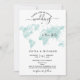 Invitación Destino de Boda Mapa Mundial Acuarela Corazón