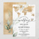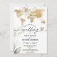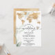 Invitación Destino de Boda Mapa Mundial Floral Dorado