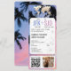 Invitación a la boda de destino de pases de embarque con un fondo fotográfico y de playa tropical