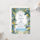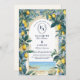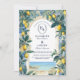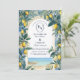 Elegante invitación a la boda de la costa amalfitana con limones acuáticos, exuberante vegetación y románticas vistas al mar. Ideal para una boda italiana de destino, celebración mediterránea o ceremonia de verano en el jardín. Personalizable completo con sus nombres, fechas y detalles de eventos para un aspecto atemporal y vibrante.