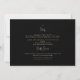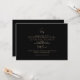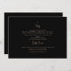 Tarjeta de gabinete de detalles del boda. Dos hoteles. Transbordador. Cócteles. Sitio boda. Fondo negro. Texto dorado.