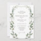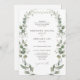 Eleva tu boda con el diseño de detalles y invitaciones de boda botánicos elegantes y formales, una fusión atemporal de un jardín floral de acuarela verde y sofisticación refinada. Este diseño clásico moderno presenta delicados elementos botánicos de eucalipto exuberante entrelazado y flores blancas elegantes, evocando el romance de la naturaleza en cada estación: primavera, verano, otoño o invierno.