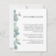 Un hermoso borde de vegetación de eucalipto en acuarela destaca esta tarjeta de información de boda moderna utilizada para proporcionar a sus invitados de boda detalles, alojamiento en hotel, su sitio web de boda u otra información útil relacionada con su boda. Personalice el texto de muestra que se muestra en la plantilla de texto con sus detalles deseados. Estas tarjetas pueden enviarse como un anexo con sus invitaciones de boda. Una suite de productos de papelería a juego está disponible en este diseño para coordinar su boda o evento con un estilo hermoso.