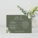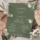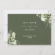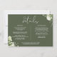 Una tarjeta de información de detalles de boda floral verde oliva elegante personalizada con tus detalles especiales en tipografía elegante y tus nombres y fecha de boda en el reverso. Diseñado por Thisisnotme