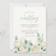 A tus invitados les encantará recibir este ramo de flores de magnolia blancas elegantes y eucalipto en acuarela con tipografía moderna y tipografía clásica todo en uno.