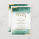 Detalles geométricos de glitter dorado verde esmeralda acuarela moderna elegante Tarjeta de invitación de boda. Esta invitación de boda chic glam es perfecta para cualquier chica glamour clásica y sofisticada. Este diseño es ideal para un evento de fiesta trendy y elegante. Diseña con tu mensaje e información. Todos los diseños son impresos.