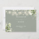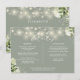 Una tarjeta de información de detalles de boda de luces de cadena floral de vegetación elegante en salvia verde con detalles personalizados con tipografía elegante y sus nombres y fecha de la boda en el reverso. Diseñado por Thisisnotme