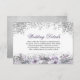 Tarjeta de información de detalles de la recepción de boda floral morada con brillo
