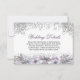 Tarjeta de información de detalles de la recepción de boda floral morado con brillo