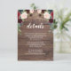 Invitación de detalles de la recepción de boda Marsala de madera rústica