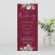 Una invitación de boda floral con vegetación que presenta tipografía de caligrafía elegante en un fondo rojo burgundy. Diseñado por Thisisnotme©