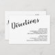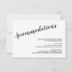 La moderna tarjeta de Boda de guiones y direcciones de alojamiento incluye el título en letra de escritura moderna en negro con detalles en letra sans serif moderna en negro sobre fondo blanco.