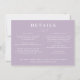 Rama botánica blanca dibujada a mano y texto, boda detalles de la tarjeta de gabinete de la plantilla de información. Se puede personalizar el color de fondo, que se muestra en malva polvorienta de moda. La plantilla proporciona varias líneas para la información detallada. Incluyen recepción, alojamiento y sitio web.