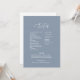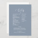 Tarjeta de gabinete de detalles del boda. Elegante. Azul y blanco. Moderno. Transbordador. Tipografía blanca.