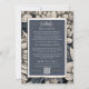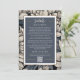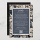 La Royal Blue & Champagne Bloom Details Card presenta un estilo moderno y lujoso con un fondo azul de pizarra profunda, enmarcado con elegancia por un suave champán blanco y ilustraciones florales grises mullidos. Los intrincados florales se envuelven alrededor de la frontera, añadiendo un aire de sofisticación y manteniendo el diseño basado en la belleza natural. La tipografía empareja un guión refinado para los títulos con un tipo de letra serif limpio para los detalles, ofreciendo un ambiente elegante y de alta gama. Los colores ricos y contrastantes de las flores azules y claras crean un estilo audaz y elegante, ideal para las parejas que buscan un estilo de invitación más dramático y formal con un toque floral atemporal.