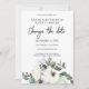 Invitación Detalles florales de cambio de fecha en blanco y a