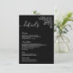 ¿Buscando una hermosa tarjeta de detalles bodas que coincida perfectamente con la ceremonia islámica de Nikah y Walima? Echa un vistazo a nuestro diseño floral en blanco y negro. Con su rica paleta de colores y sus complicados detalles florales, esta invitación impresionará. Además, con texto de personalizable y tipografía elegante, puede asegurarse de que sus huéspedes tengan toda la información que necesitan para unirse a usted en su día especial. (Disponible en diferentes tonos de color, Invitación y Sobre con el mismo estilo) Siéntase libre de contactarme para: >ayuda en personalización o modificación de diseño >ponerla a disposición en un tema de color de su elección >hacer un diseño similar para cualquier producto