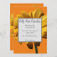 Un elegante marco plateado y texto sobre el rocío desciende la foto de margarita y la invitación de cumpleaños del naranja.
