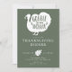 Esta moderna invitación para cenar al día de Acción de Gracias incluye una silueta divertida de un pavo con el dicho "Gobble Gobble" sobre un fondo verde. La invitación es sencilla y de diseño, con la fecha, la hora y la ubicación de la cena en un estilo de diseño. La silueta divertida del pavo y el "Gobble Gobble", que le dan un toque de alegría y alegría, y el fondo naranja, quemado de luz, le da un toque de calidez y alegría. El diseño general es perfecto para celebrar la fiesta de Acción de Gracias con sus seres queridos de una manera moderna y festiva.