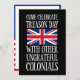 Ven a celebrar el Día de la Traición con otros coloniales ingratos divertida invitación con la bandera del Reino Unido. Una divertida invitación para el 4 de julio y el Día de la Independencia. Humor británico para una fiesta del 4 de julio. Bandera británica del Reino Unido y colores estadounidenses en la parte posterior.