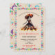 Invite a sus amigos y celebre juntos el Día de los Muertos, con esta invitación de moda, que incluye un elegante cráneo de azúcar con un hermoso y elegante vestido fiesta y flores de colores vivos. Personalice fácilmente la invitación con sus detalles de celebración del Día de los Muertos.