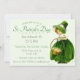 Ilustración vintage del Día de San Patricio con una niña con un vestido verde largo y sombrero con una cesta de flores blancas.