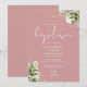 Invitación Día del Bautizo de Flor Monograma Rosa Polvoriento