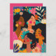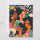Un hermoso grupo de mujeres de diferentes culturas con un tema floral de colores vivos.