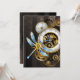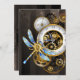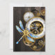 Diales antiguos de oro y bronce, decorados con libélula mecánica sobre fondo marrón, rayado. Steampunk.