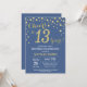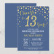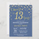 Invitación de cumpleaños número 13 con fondo de diamante Purpurina azul y oro. Confetti de oro.Cumpleaños de niños. Cumpleaños de adolescente o Chica. Para más personalización, haga clic en el botón "Personalizar" y utilice nuestra herramienta de diseño para modificar esta plantilla.