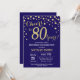 Invitación de cumpleaños 80 con fondo de diamante azul y Purpurina de oro de la Marina. Confetti de oro. Cumpleaños de adultos. Cumpleaños de hombres o mujeres. Para más personalización, haga clic en el botón "Personalizar" y utilice nuestra herramienta de diseño para modificar esta plantilla.