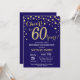 Invitación de cumpleaños número 60 con fondo de diamantes azul y Purpurina de oro de la Marina. Confetti de oro. Cumpleaños de adultos. Cumpleaños de hombres o mujeres.